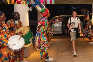 圣基茨和尼維斯聯(lián)邦副總理杰弗里-漢利和旅游部長瑪莎-T-亨德森迎接了帕爾默,一支當?shù)貍鹘y(tǒng)表演團隊也到場為其獻上地道的圣基茨式歡迎。帕爾默在降落后表示:“在贏得世俱杯后來到圣基茨,感覺特別有意義。這里是我祖父對足球熱愛的開始,這個島既美麗又寧靜,我迫不及待想要探索這里的山脈、雨林和大海,還要品嘗當?shù)氐拿朗场!?/p>