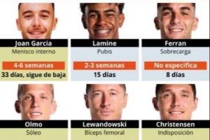 這使巴薩近期不堪重負(fù)的傷員名單再添一位。目前,巴薩多名球員仍處于傷缺狀態(tài):特爾施特根、加維、拉菲尼亞、霍安-加西亞、奧爾莫、萊萬(wàn)多夫斯基、克里斯滕森,如今佩德里也加入其中。